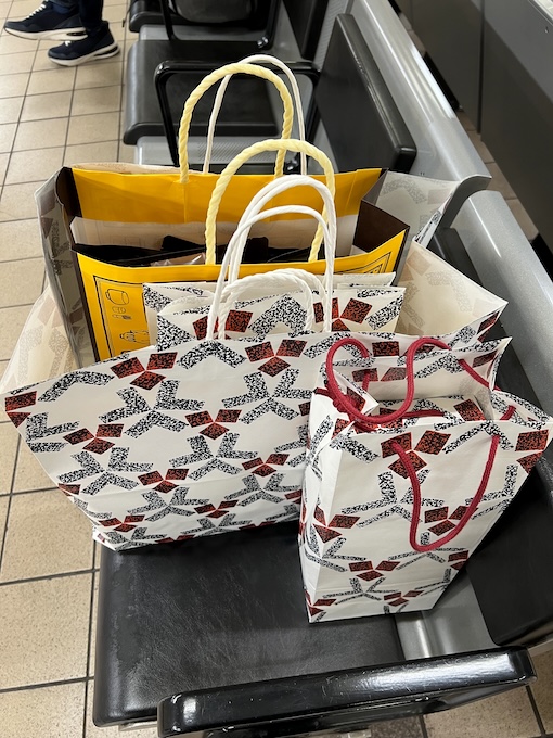 買い物が終わったらどこかでランチしようと思っていたのですが、荷物が重すぎて無理でした。