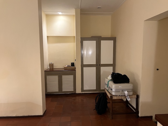 空調はクーラーと扇風機がありましたが、もちろん使わず、長袖長ズボン、靴下を履いて寝ました。