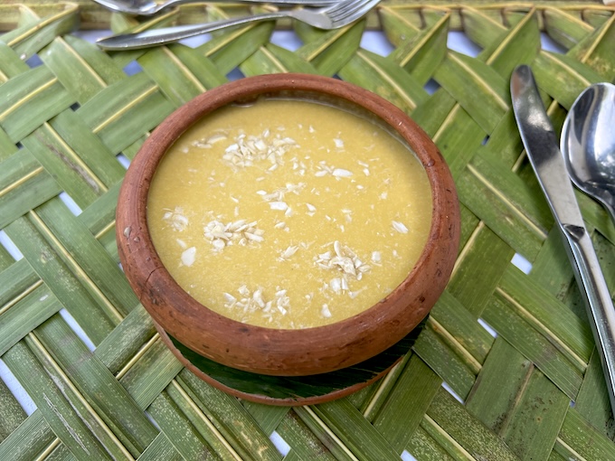 テーブルはバナナの葉っぱで編んだものが敷かれています。