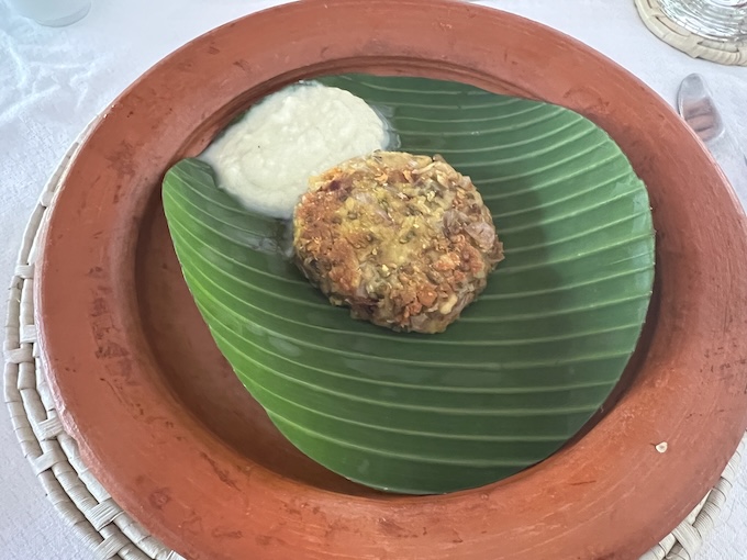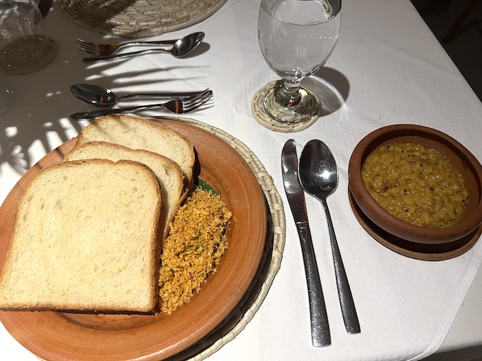 パンの横がそれです。ココナッツフレークと魚で出来ています。