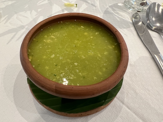 Rampaスープ。ハーブの一種、さわやかでやさしい味でした。